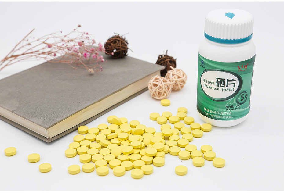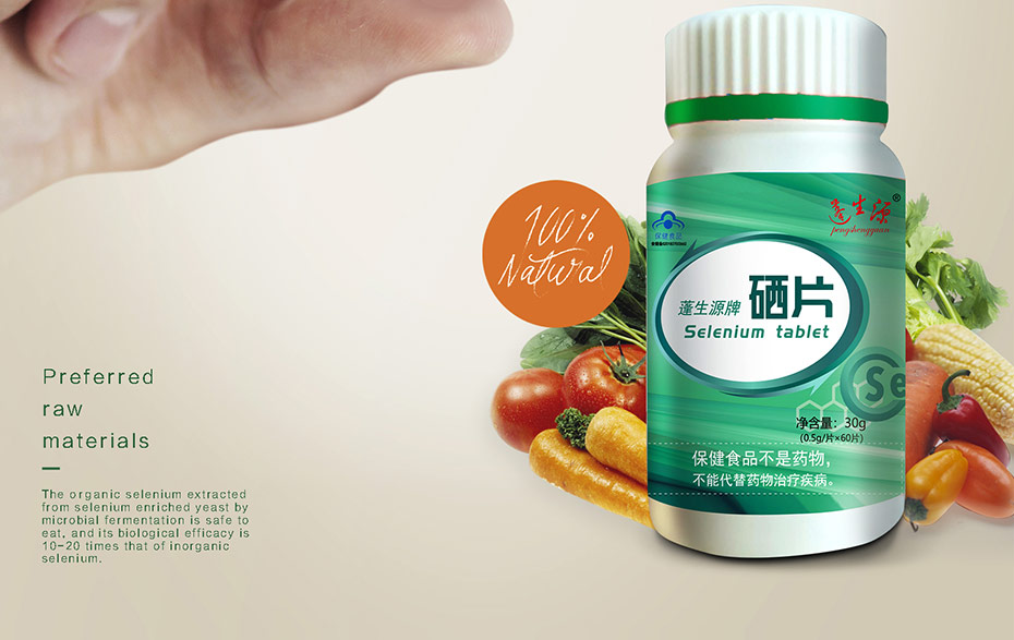【品名】蓬生源牌硒片【原料】富硒酵母【輔料】麥芽糊精,食用玉米淀粉,微晶纖維素,二氧化硅,硬脂酸鎂,包衣預混劑(羥丙甲纖維素,二氧化鈦,檸檬黃鋁色淀,聚乙二醇)【功效成分及含量】每片含:硒84μg